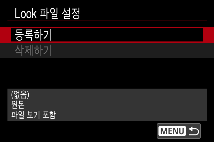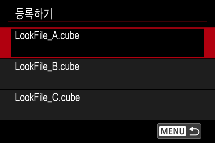 - * 일부 카메라 모델에서는 메모리 카드에 20개 이상의 LUT을 등록해도 최대 20개까지만 표시될 수 있습니다.