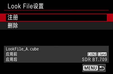 8.确认已注册的 LUT 名称显示在 [Look File 设置] 窗口中。
